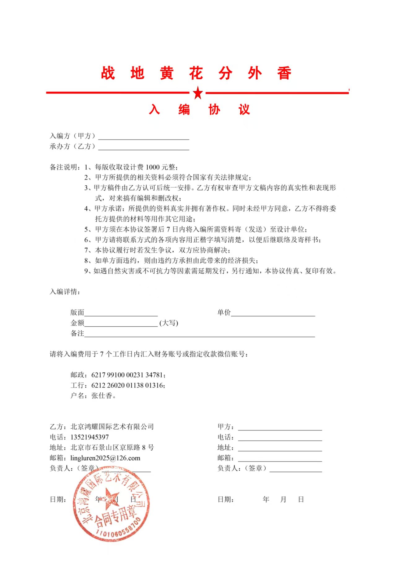 近日,我社发现有不法分子冒用我社名义,发布《战地黄花分外香邀请函》《出版计划》《入编协议》,以作品入编《战地黄花分外香》大型书画文献为诱饵,诱骗公众交纳版面设计费,实施诈骗(详见附件)。该行为严重损害我社声誉,侵害我社及公众的合法权益。对此,我社严正声明如下: