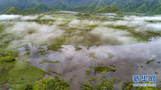 泥炭藓能吸收超过自身体重25倍的水分,每当雨水充沛时,能把水分运输到内部储存起来;而当周围湿度下降时,则能通过蒸腾作用,再次将水分释出。正是由于泥炭藓这种神奇的特性,使得大九湖水位常年来始终能够保持稳定,无论是雨量充沛的夏季,还是缺水的冬季,既不会爆发洪水,也从未干涸见底。