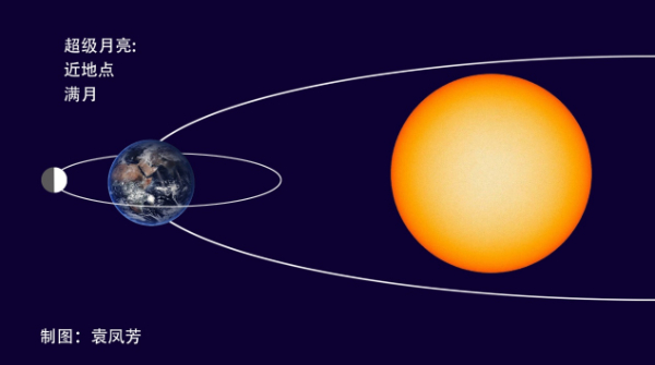 当月球位于近地点附近,月亮的圆球又刚好是满月阶段时,月亮从视觉上看起来是最大的,故而被称为“超级月亮”。