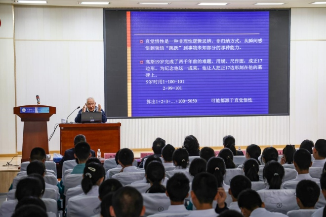2023年11月1日,中国工程院院士金涌在北京师范大学良乡附属中学“上课”。(来源:北京科协)