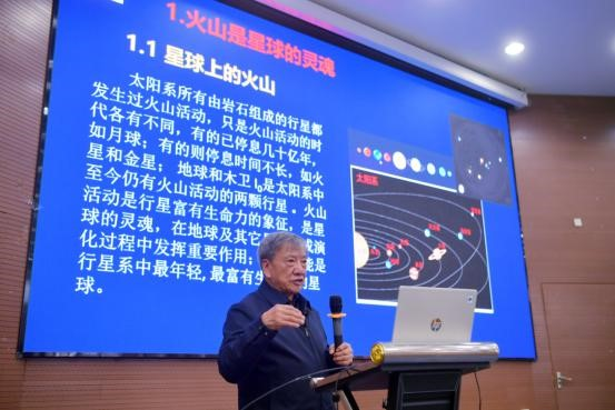 2023年11月22日,中国科学院院士刘嘉麒给同学们讲述星球上的火山。(来源:北京科协)