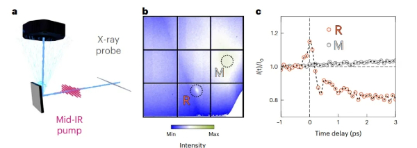 在这些物理学中,至关重要的是极性不稳定性和反铁畸变旋转之间竞争,这在平衡态时,阻碍了长程铁电性的形成。利用高强度中红外光脉冲,以共振驱动17THz的Ti–O伸缩模式,并在自由电子激光器上,使用时间分辨X射线漫散射,测量了由此产生的晶格涨落变化。在快速增加之后,观察到了R点反铁畸变晶格涨落的长寿命猝灭。
