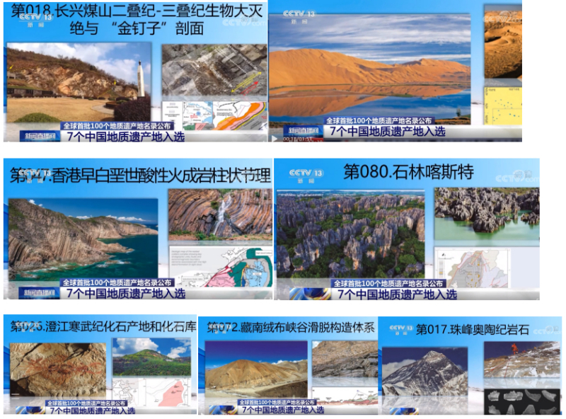 2022年10月,我国7处地质遗迹成功入选全球首批地质遗产地名录(图片来源:央视新闻截图)