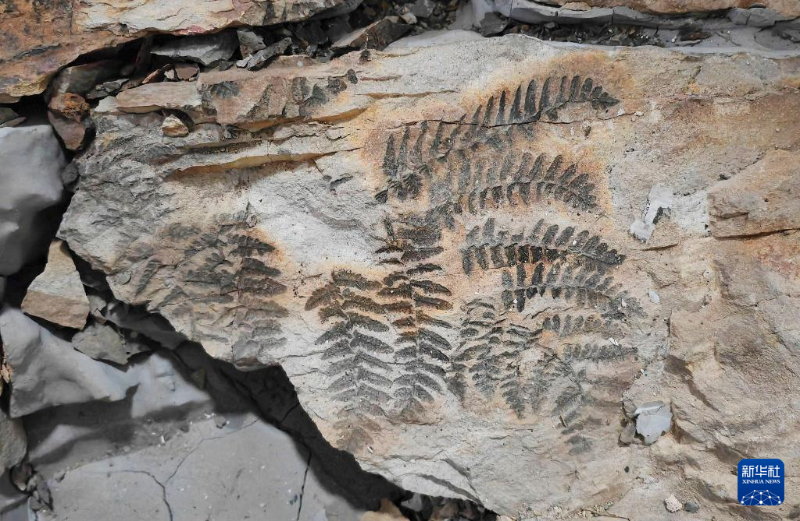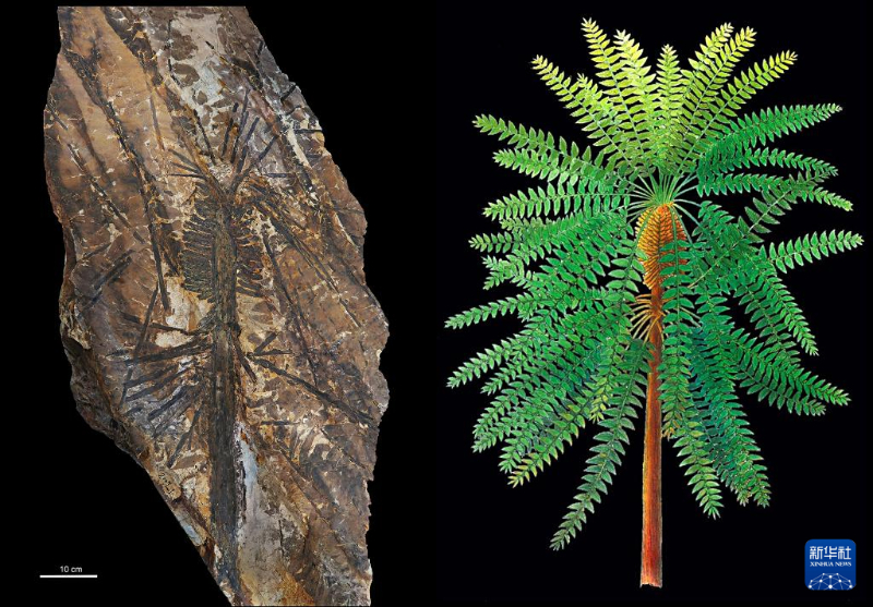内蒙古自治区乌达二叠纪植被化石产地发现的植物化石及植物复原图(图片来源:新华社)