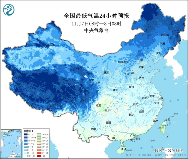 立冬日全国最低气温预报(图片来源:中央气象台)