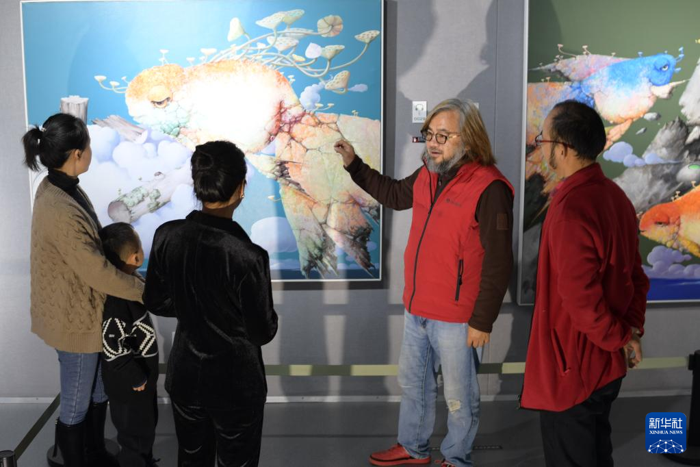 10月24日,观众在贵州省贵阳市乌当区贵州天海美术馆参观。新华社记者 杨楹 摄