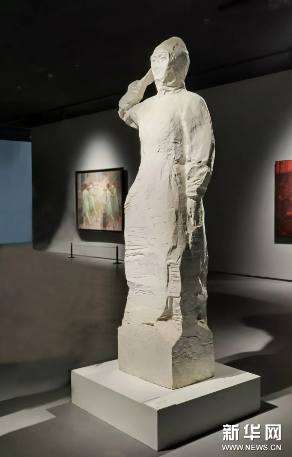 《使命》是著名雕塑家吴为山在2020年初为礼赞武汉这座“英雄的城市”、讴歌抗疫中的无名英雄而创作的汉白玉雕塑。这件象征抗疫丰碑、应时而生的优秀作品不仅为提升整个展览的思想性、主题性、艺术性发挥了重要作用,也让武汉观众得以直接欣赏原作,获得艺术熏陶,重温伟大抗疫精神。