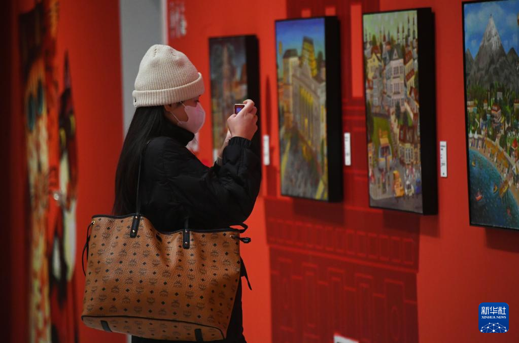 1月15日,观众在“寻喵启事”艺术展上观看展出的画作。新华社记者 任超 摄