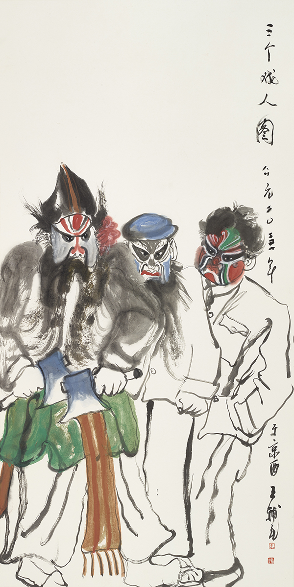 三个戏人图136×68cm 2023年