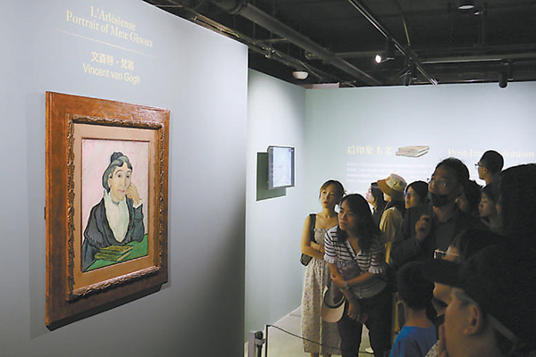 梵高的画作《阿尔勒妇女(吉努夫人的肖像)》是展览现场人气最高的展品之一。 本报记者 王广燕摄