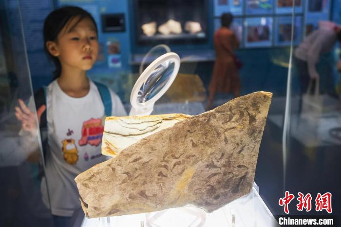 展出的寒武纪早期动物化石吸引观众的目光。 泱波 摄