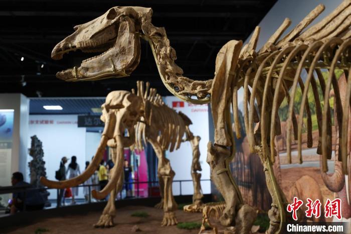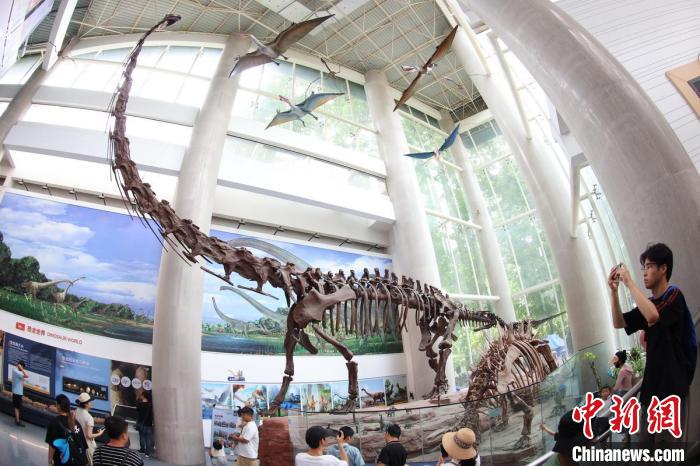 观众们在南京古生物博物馆内参观恐龙标本。泱波 摄