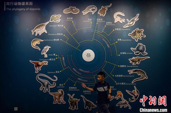 孩子在爬行动物谱系图前参观。 泱波 摄