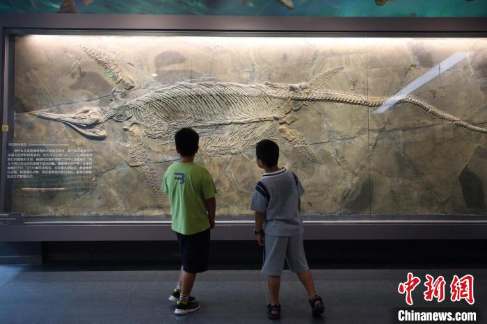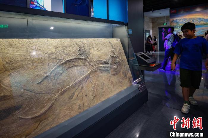展出的晚三叠纪时代周氏黔鱼龙化石。 泱波 摄