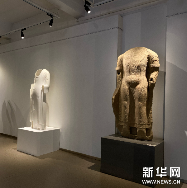 云冈研究院院长杭侃统筹策划了整个展览,青州博物馆、南涅水博物馆以及云冈研究院分别调动了各自的馆藏北朝石刻参与展览。其中一件青州龙兴寺出土的北齐曹家样佛身从未对外展出,这次也是它的首展,它与阳新的“空衣”系列作品有直接的渊源;那件南涅水出土的北朝造像塔,完整度极高,内容丰富,一节一节堆垒起来,造型宏伟,它与阳新的“永远”系列作品陈列在一起,呈现出内在的关联。