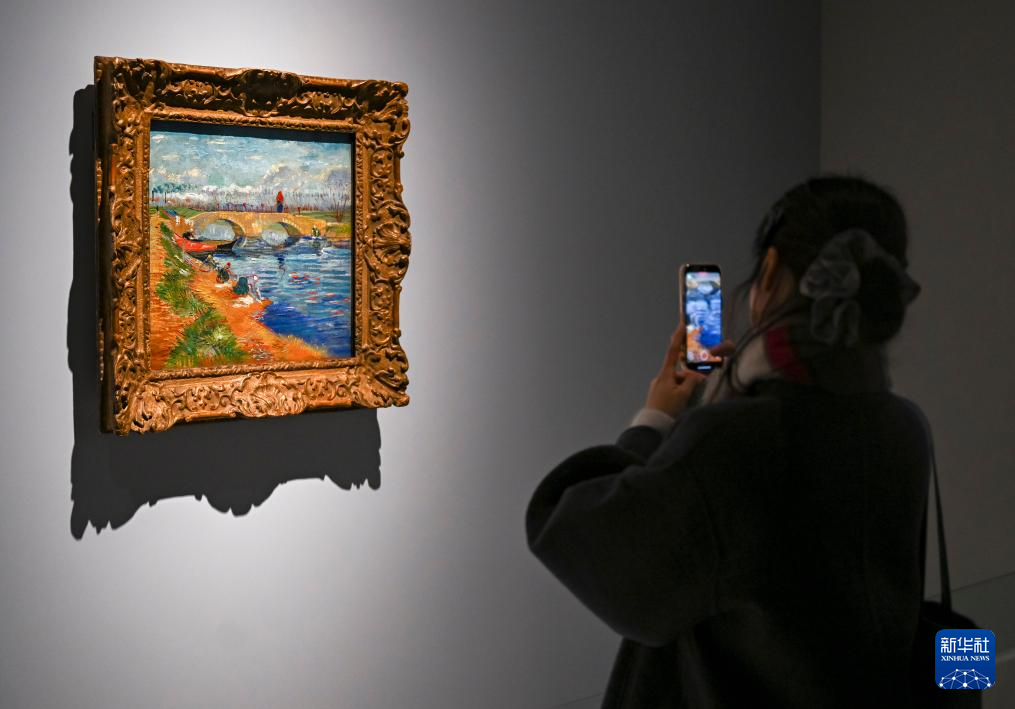 1月21日,媒体人员在“印象·派对”艺术大展拍摄梵高的作品《维格伊拉运河上的格莱兹桥》。