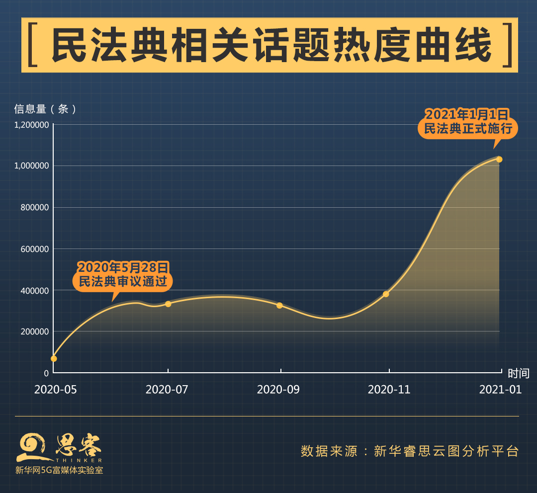 ▲从审议通过到正式施行,民法典相关话题热度整体呈上升趋势。
