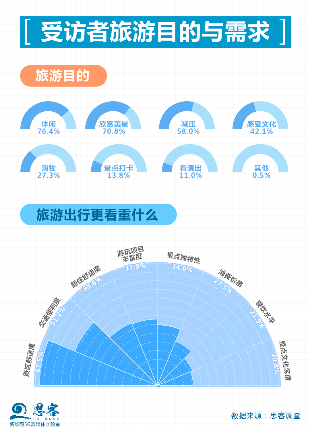钱包鼓起来了,超7成受访者旅游预算增加。其中旅游预算大幅增加的受访者占20.98%,小幅增加的受访者占52.97%。2021年“五一”假期,全国国内旅游出游2.3亿人次,按可比口径恢复至疫前同期的103.2%,实现国内旅游收入1132.3亿元。乡村地区居民出游率达14.3%,农民参与旅游的比例越来越高。