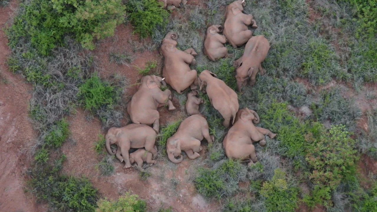 ▲6月20日在云南省玉溪市峨山县拍摄的象群(无人机视频截图)。新华社发(云南省森林消防总队供图)