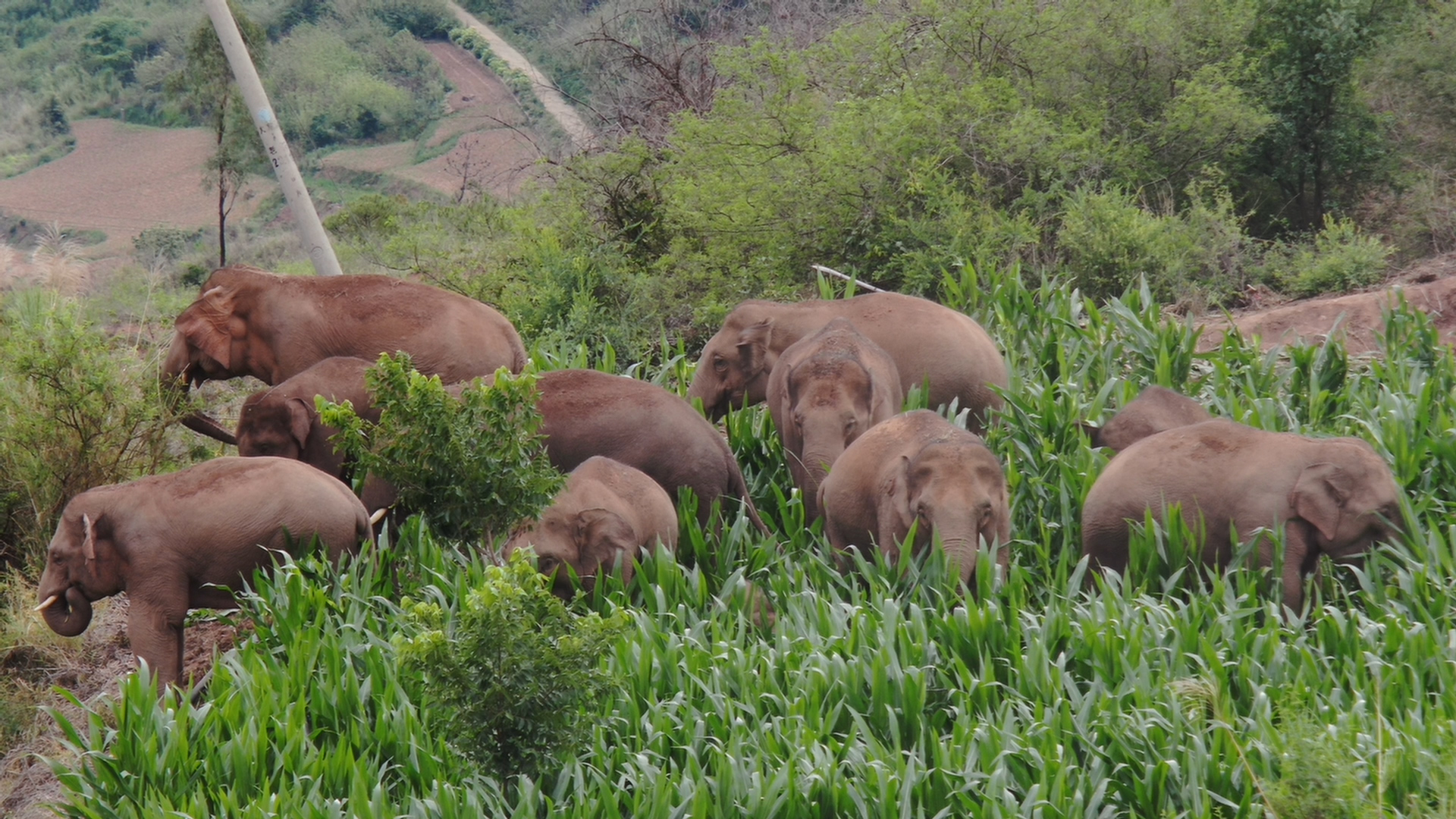 ▲6月17日,象群在玉溪市易门县十街乡。(云南省森林消防总队)