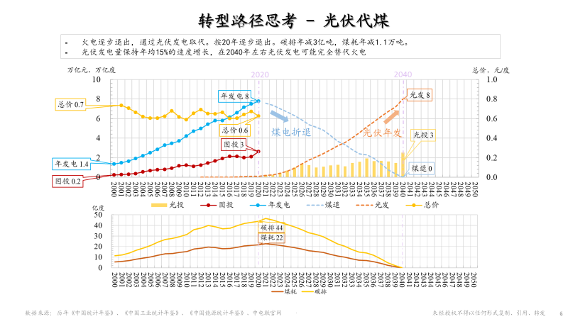 如果转型成立的话,我们应该怎么来实现这样的过程呢?比如说如何去实现碳达峰,碳中和的目标?通过下面的图来展示一下我对于转型路径的思考——光伏代煤。