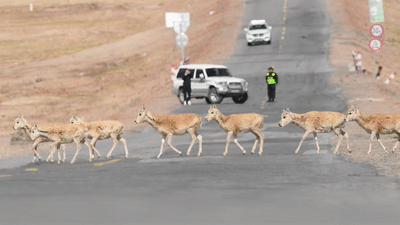 而在青藏公路这头,可可西里管理处安排工作人员采取短暂交通管制、禁止鸣笛、巡护救助等措施,为藏羚羊迁徙产仔保驾护航。伴随迁徙高峰期的到来,藏羚羊“过公路”已经成为青藏公路沿线的一道独特风景。