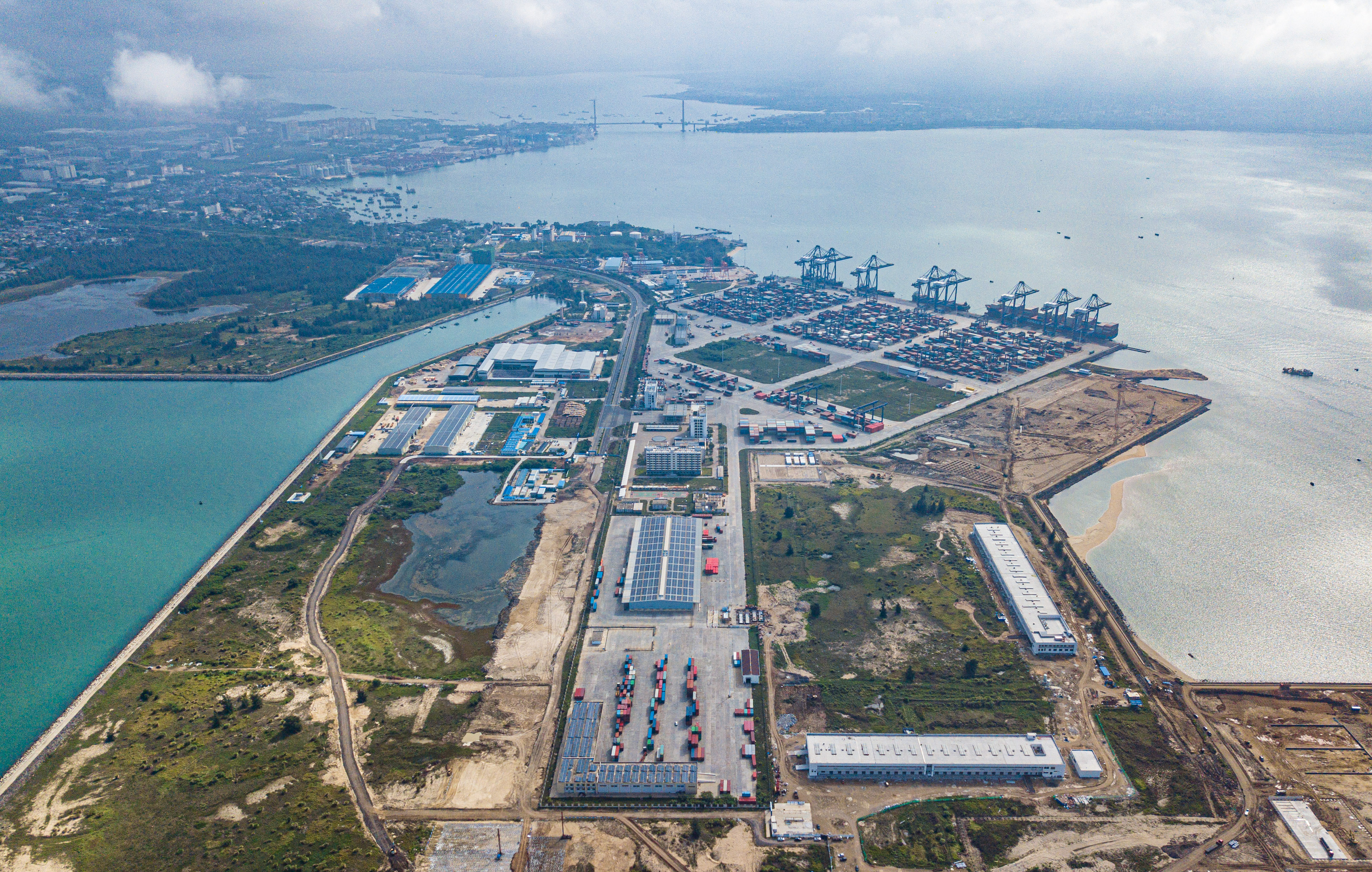 10月25日拍摄的洋浦港封关运作项目和洋浦国际集装箱码头(无人机照片)。新华社记者 蒲晓旭 摄