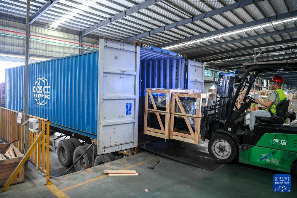在位于广西北海市铁山港(临海)工业区内的一家玻璃生产企业,工作人员将玻璃成品装进准备运往国外的集装箱(3月13日摄)。
