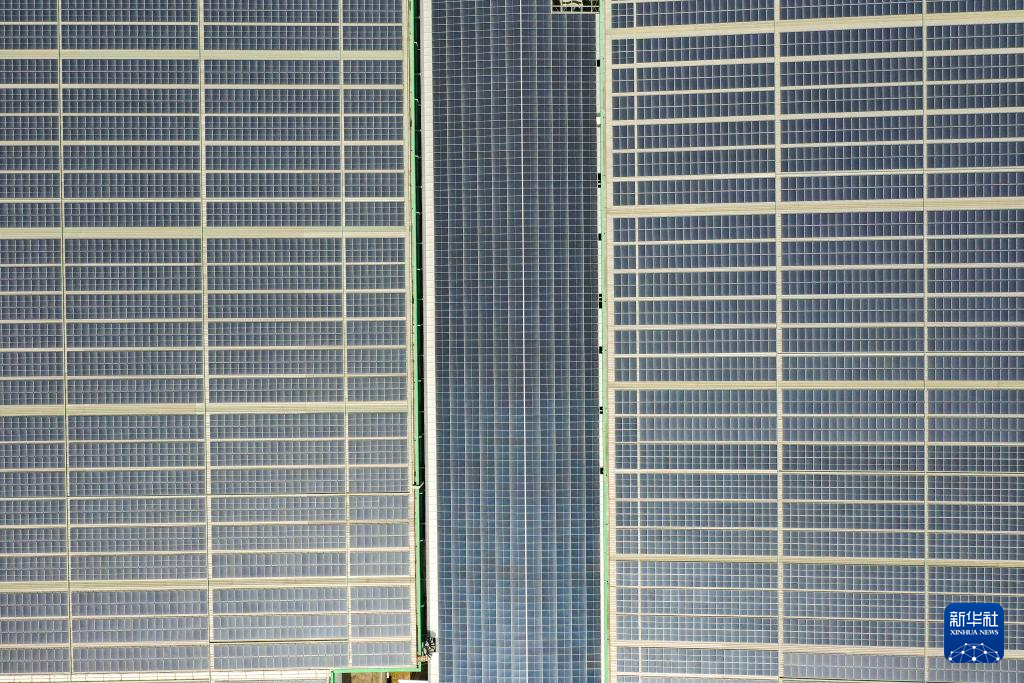 这是4月15日在广西北海市铁山港(临海)工业区内拍摄的一家企业。这家企业厂房屋顶铺满了太阳能光伏板,这些太阳能光伏板使用的玻璃就是当地一家玻璃生产企业的产品(无人机照片)。