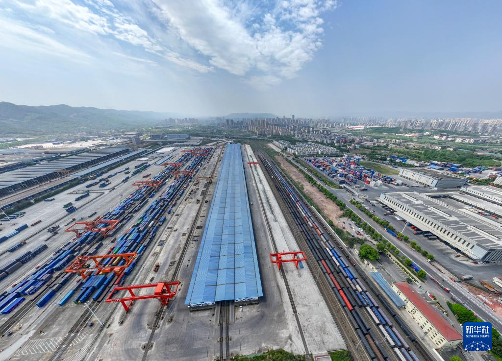 这是4月17日在重庆国际物流枢纽园区拍摄的团结村中心站、兴隆场编组站和陆海新通道重庆无水港(从左至右,无人机照片)。