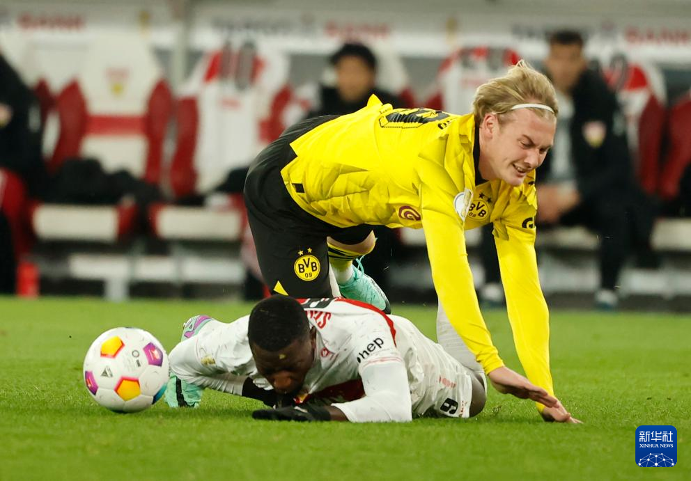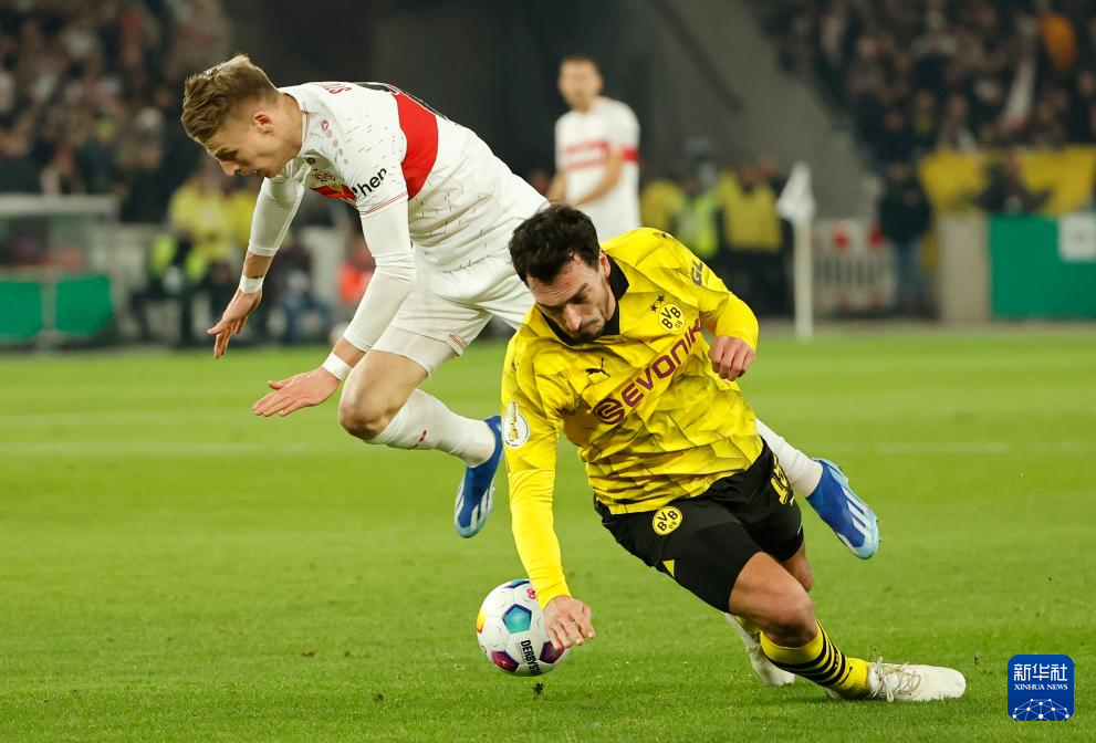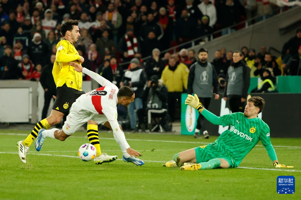 当日,在2023-2024赛季德国杯足球赛八分之一决赛中,斯图加特队主场以2比0战胜多特蒙德队,晋级八强。