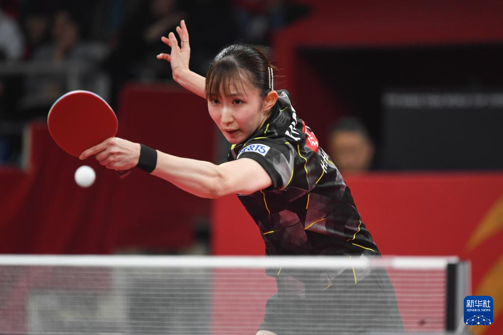 12月8日,日本队选手早田希娜在女单比赛中回球。她以2比1战胜韩国队选手金娜英。新华社记者 胥冰洁 摄
