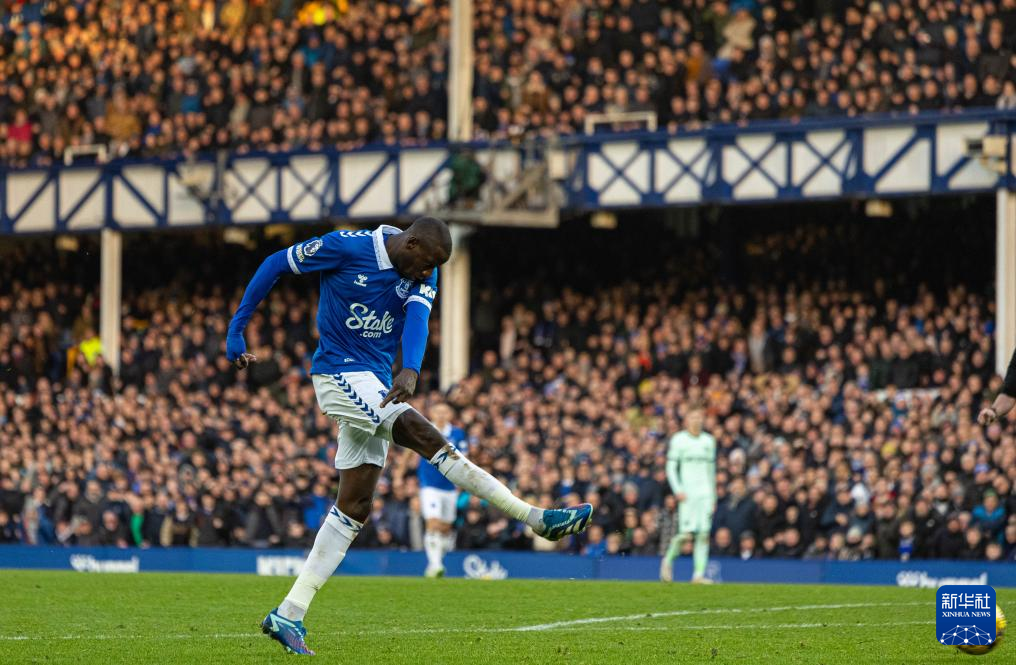 12月10日,埃弗顿队球员杜库雷(前)在比赛中射门得分。新华社发