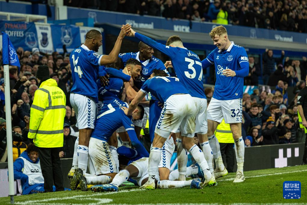 12月10日,埃弗顿队球员庆祝进球。新华社发