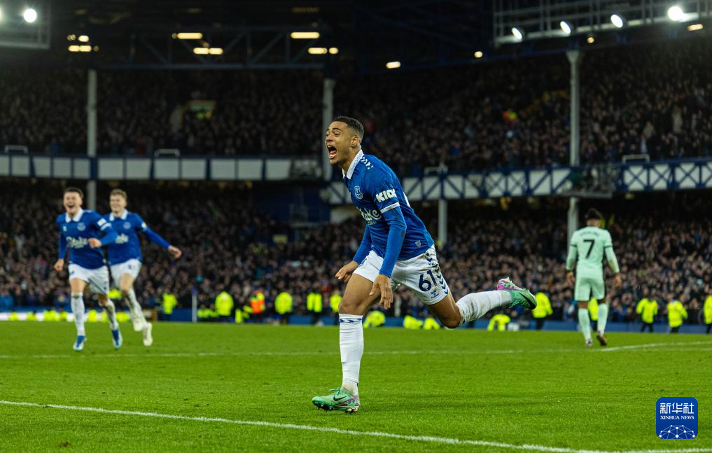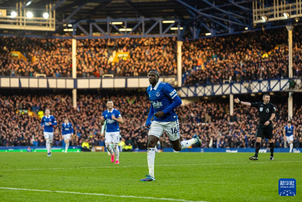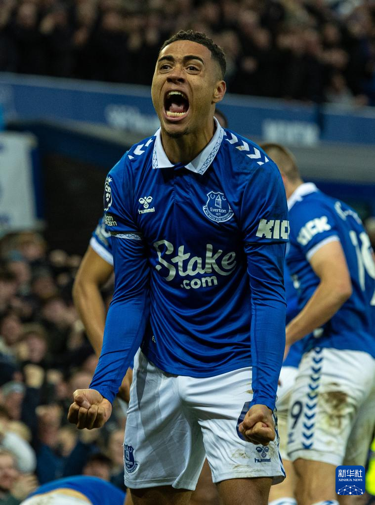 12月10日,埃弗顿队球员多宾在比赛中庆祝进球。新华社发