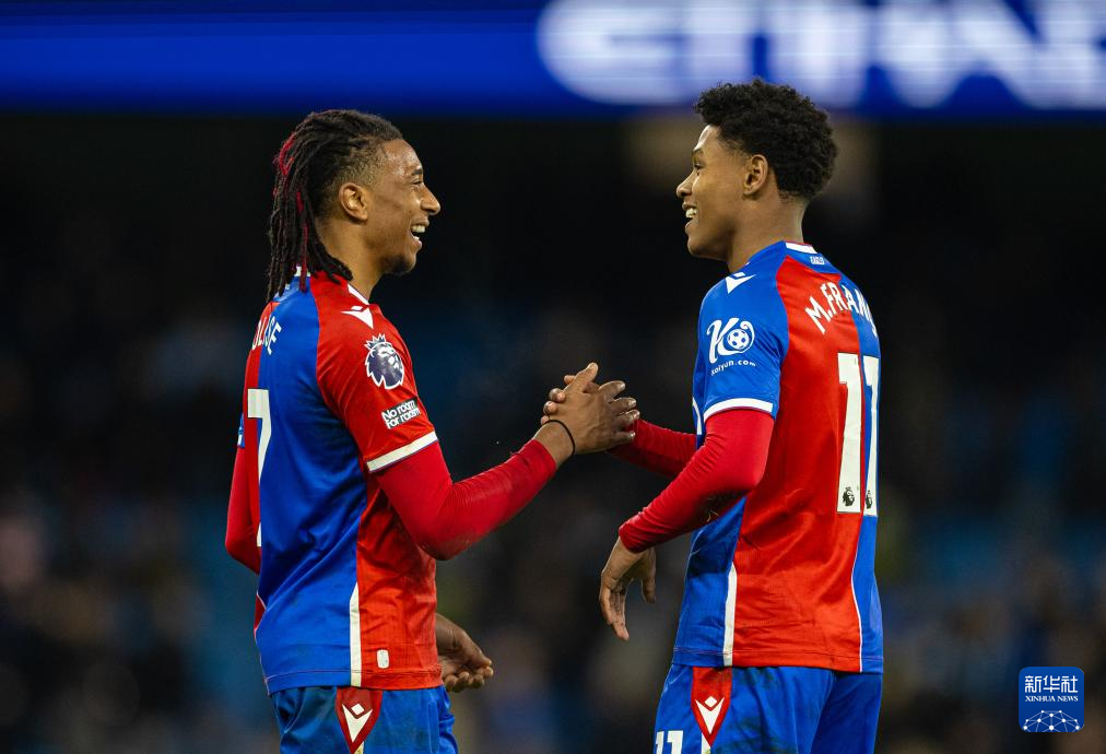 12月16日,水晶宫队球员奥利塞(左)在比赛后与队友弗朗萨庆祝。新华社发
