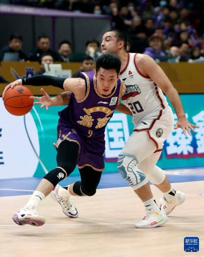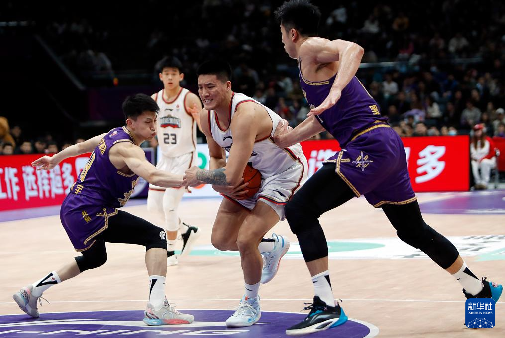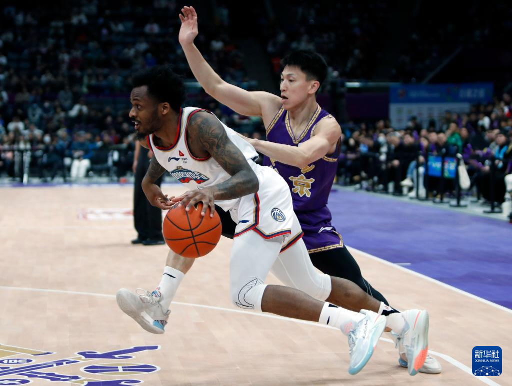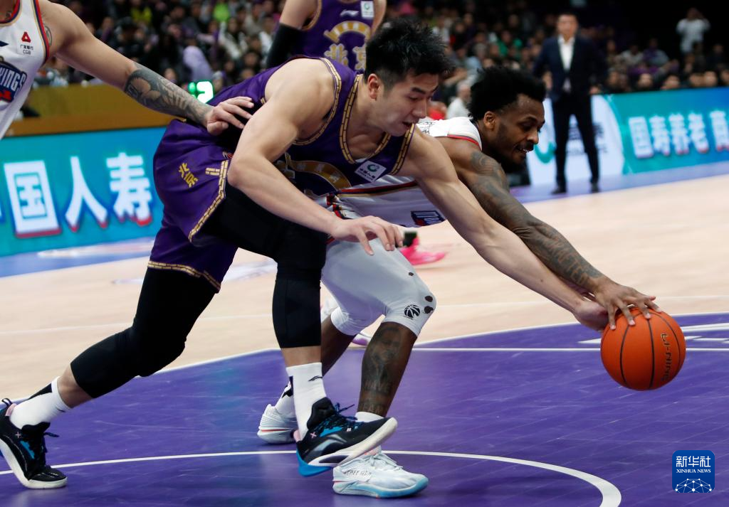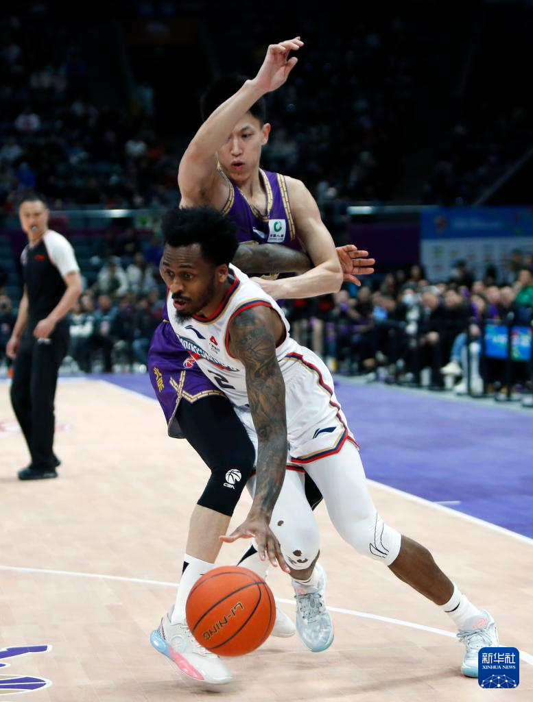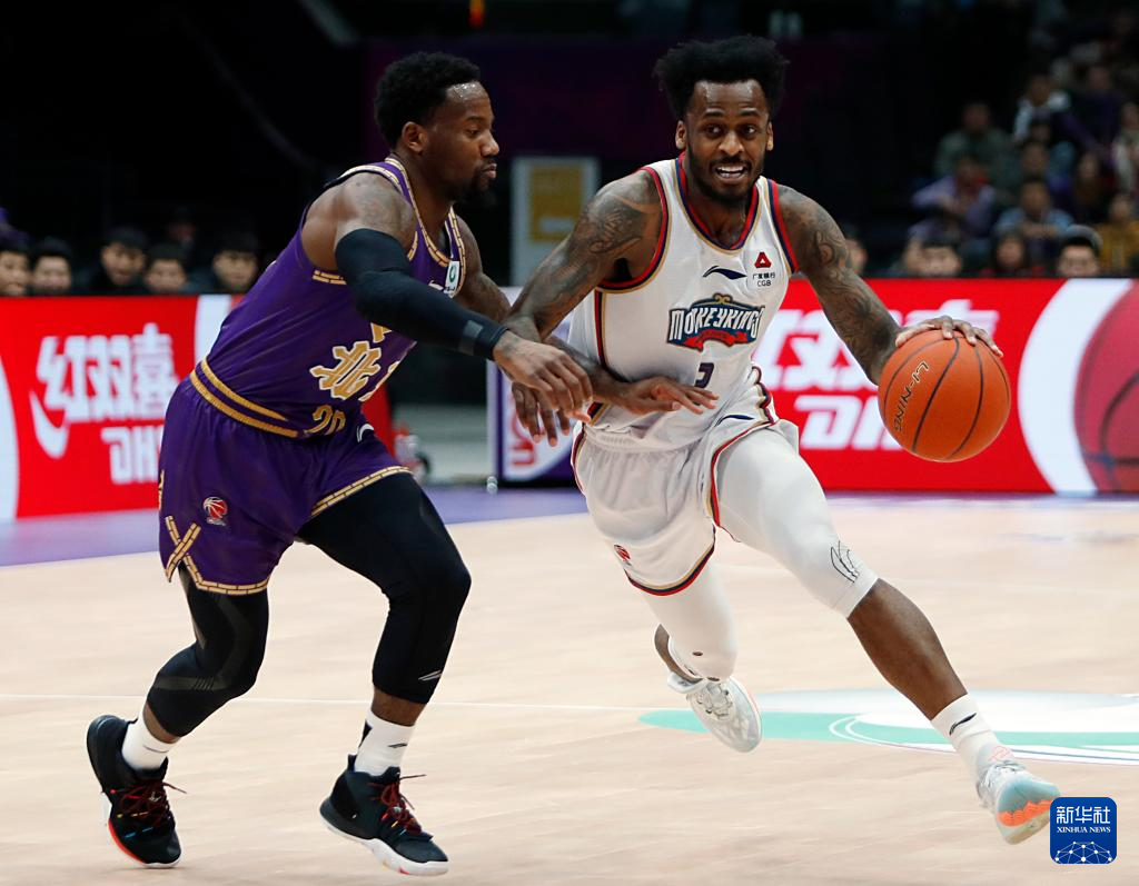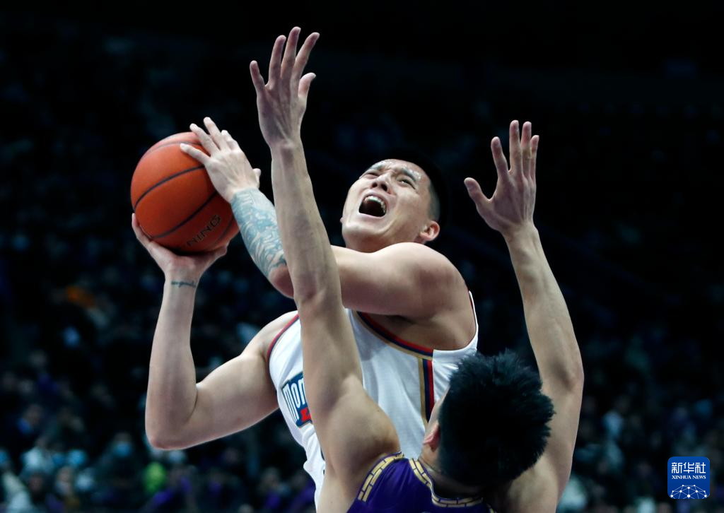 12月30日,南京头排苏酒队球员兼主教练西热力江(右)防守北京控股队球员廖三宁。