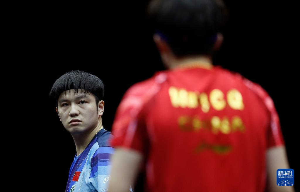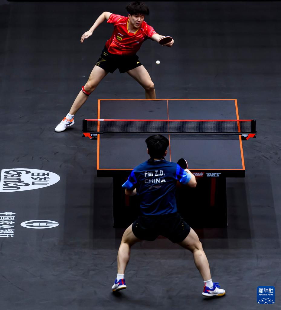 1月5日,王楚钦(上)、樊振东在比赛中。新华社发(尼库摄)