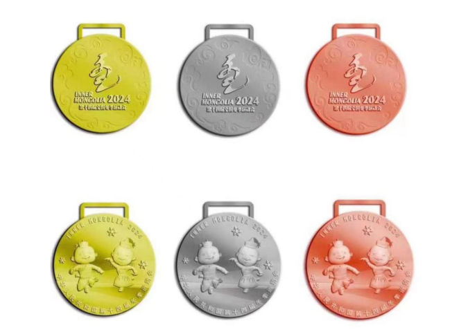 奖牌包含会徽、吉祥物及云纹、雪花、草原等元素