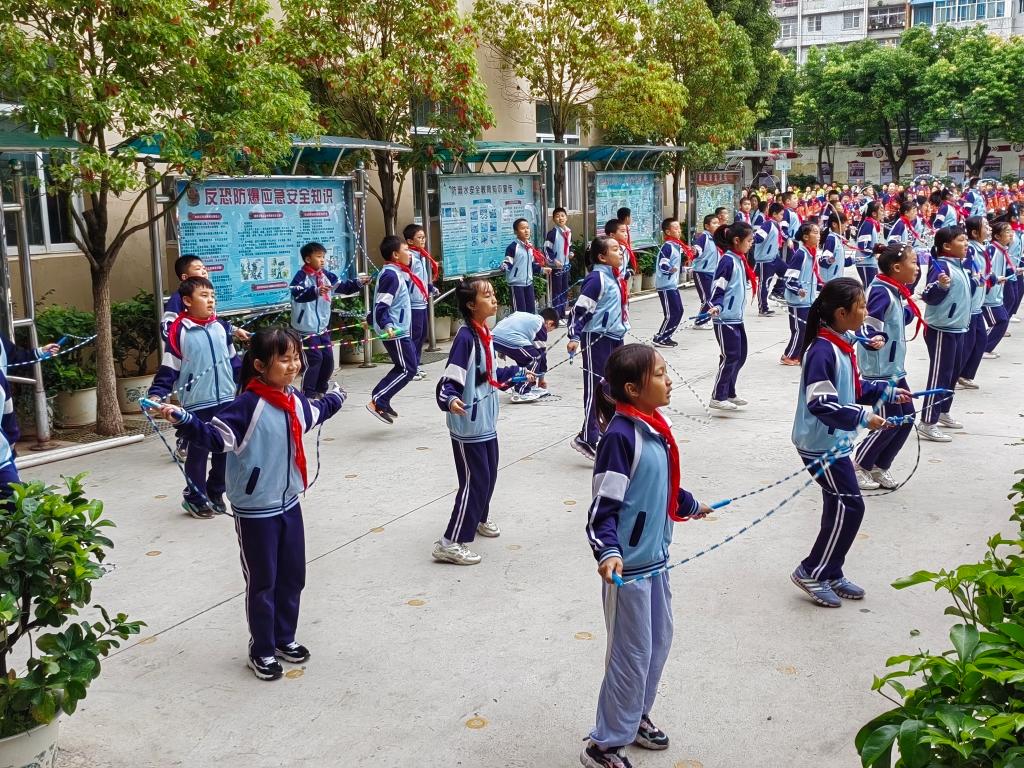 “麻雀小学”新迎二小的学生练跳绳。新华社记者 岳冉冉 摄