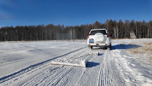 越野车拖着土暖气压上几圈