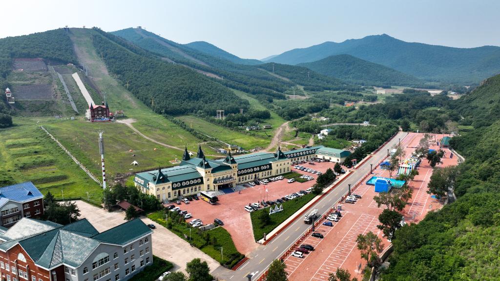 这是位于内蒙古呼伦贝尔市扎兰屯市的扎兰屯金龙山滑雪场(无人机照片,2023年7月11日摄)。新华社记者 贝赫 摄