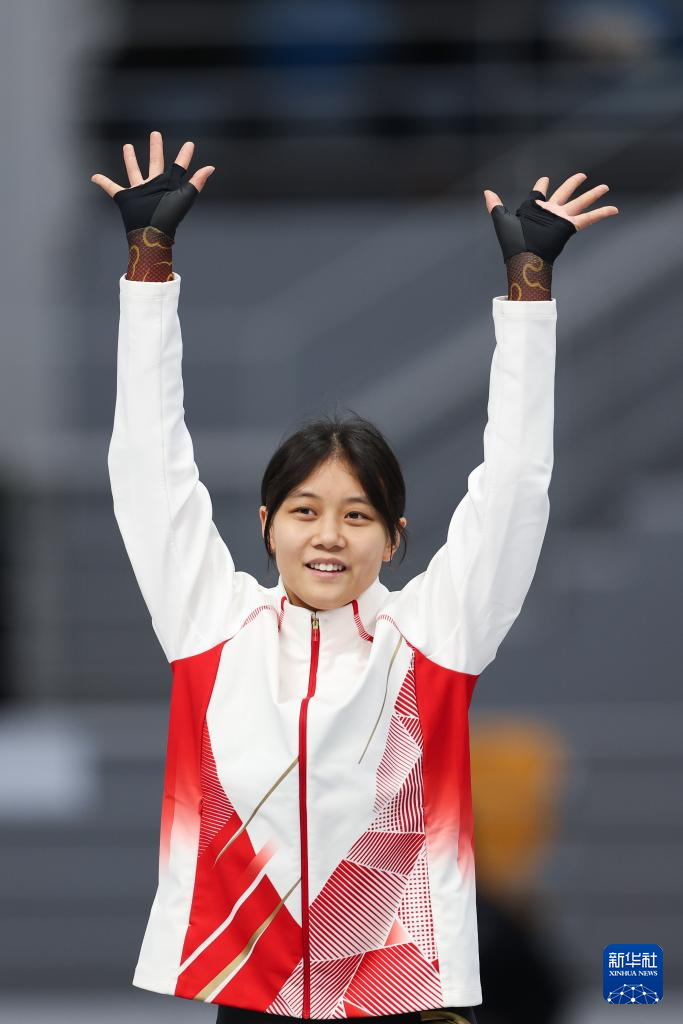 1月23日,刘昀琪在比赛后庆祝。新华社记者 许雅楠 摄