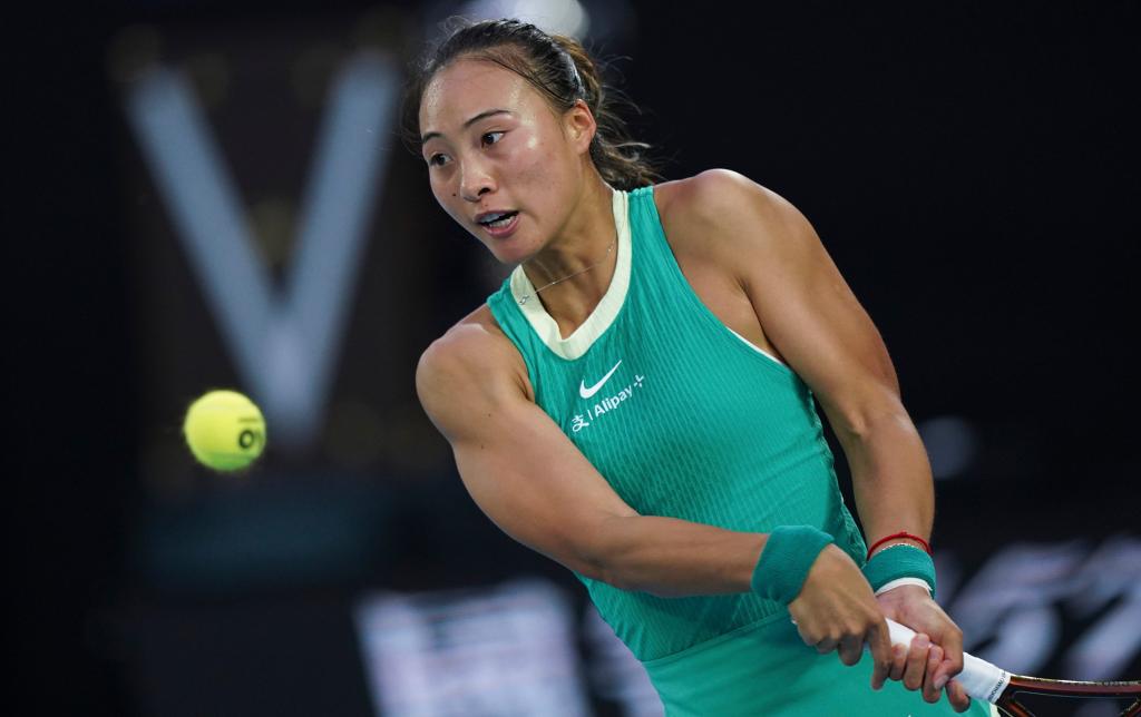 1月27日,郑钦文在比赛中回球。新华社记者 王申 摄