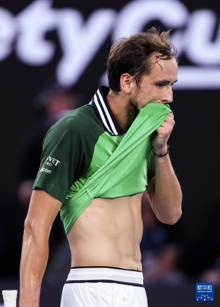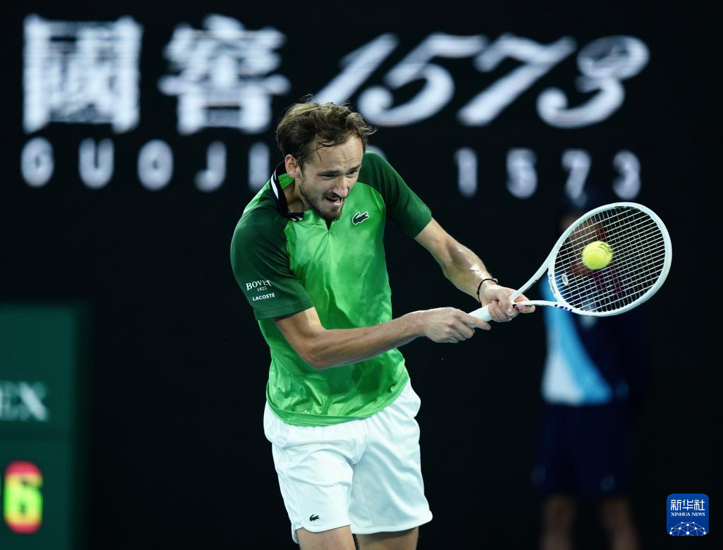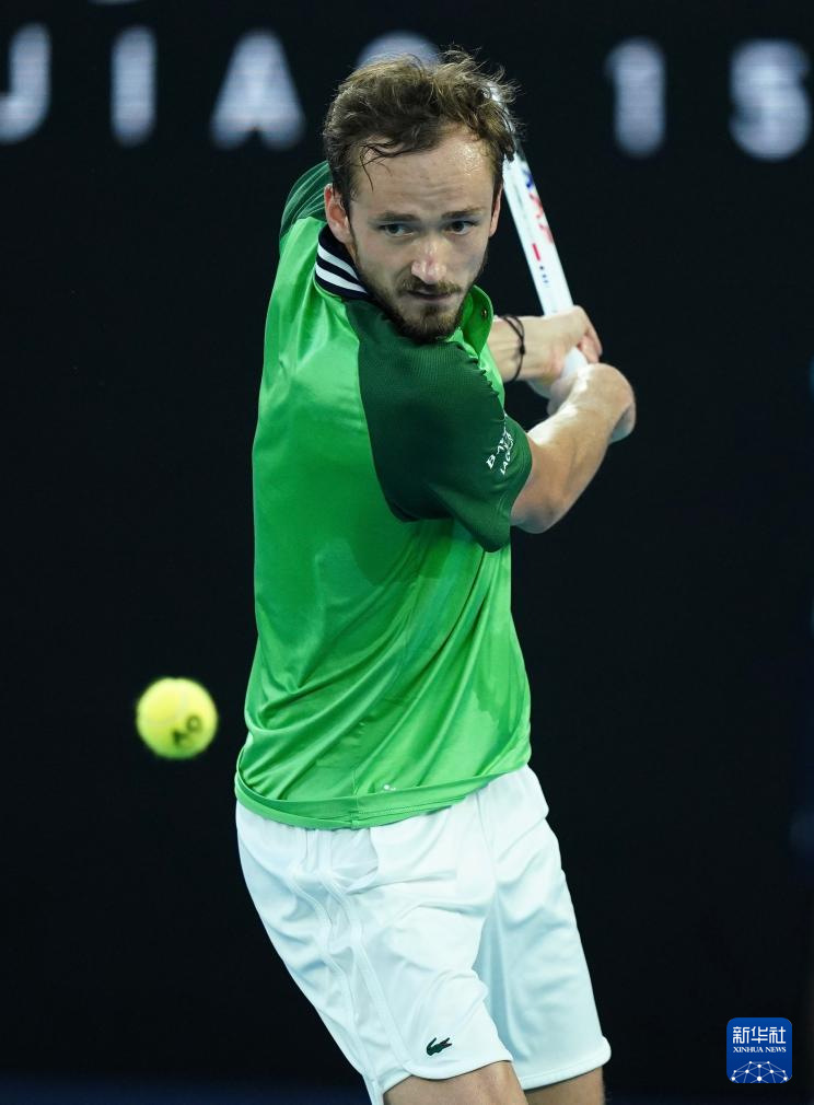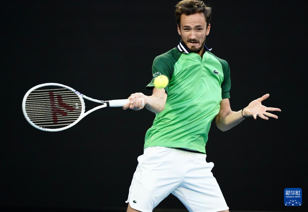 1月28日,梅德韦杰夫在比赛中回球。新华社记者 王申 摄