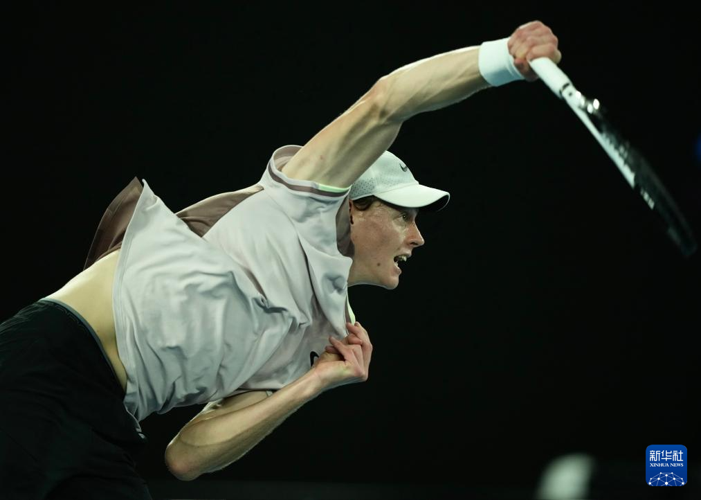 1月28日,辛纳在比赛中发球。新华社记者 王申 摄