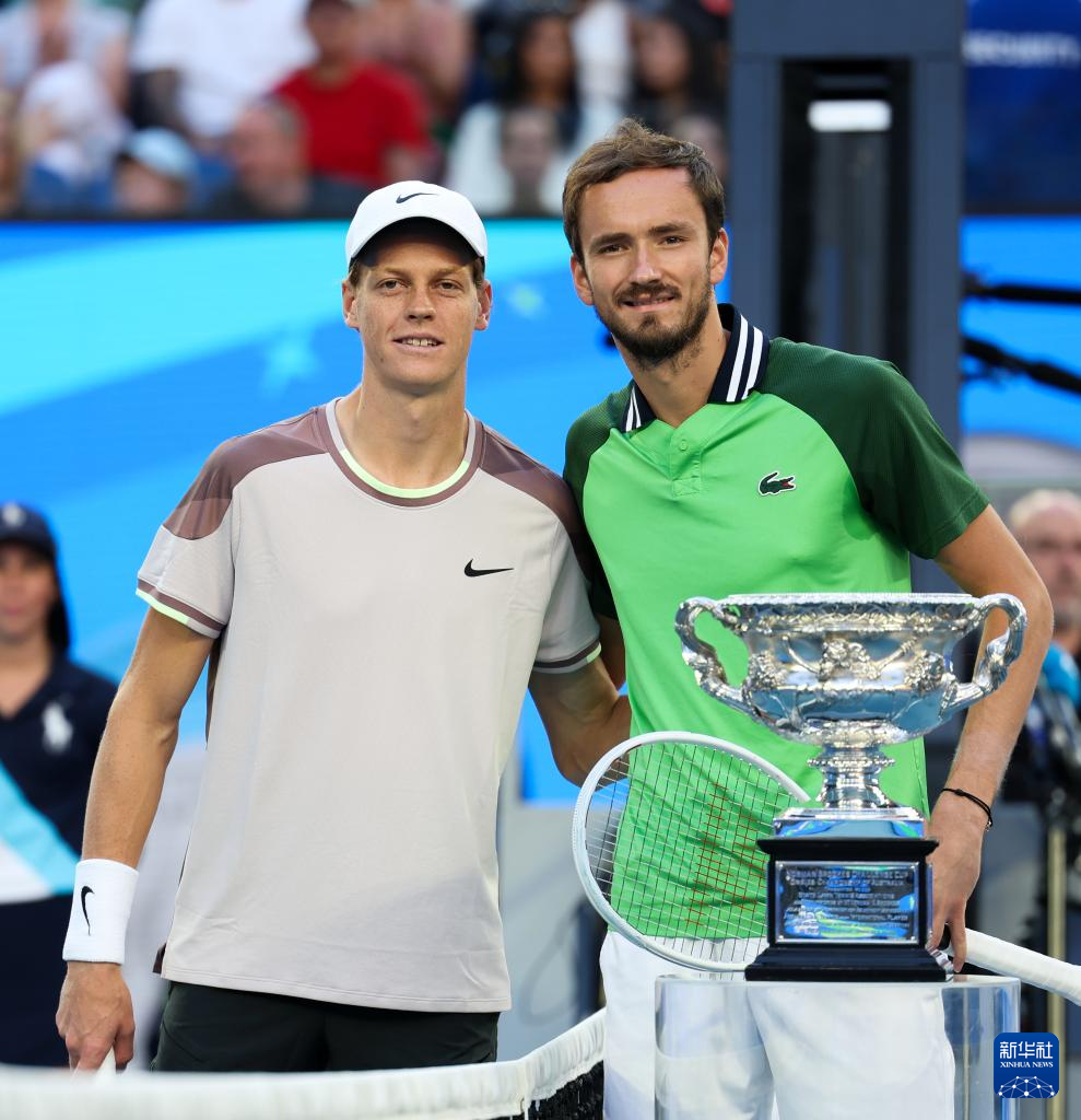 当日,在墨尔本进行的2024年澳大利亚网球公开赛男单决赛中,意大利选手辛纳对阵俄罗斯选手梅德韦杰夫。