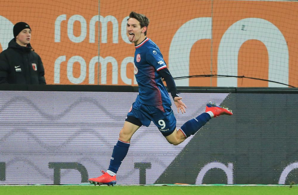 2019年,杜塞尔多夫队球员拉曼在2018-2019赛季德国足球甲级联赛庆祝进球。新华社发(菲利普·鲁伊兹摄)