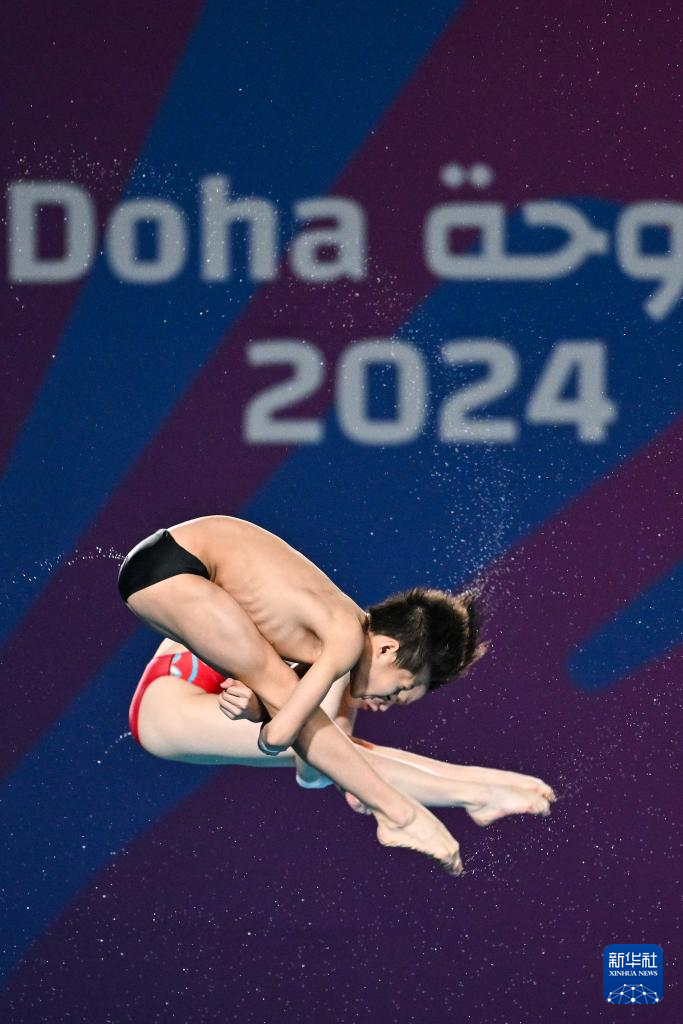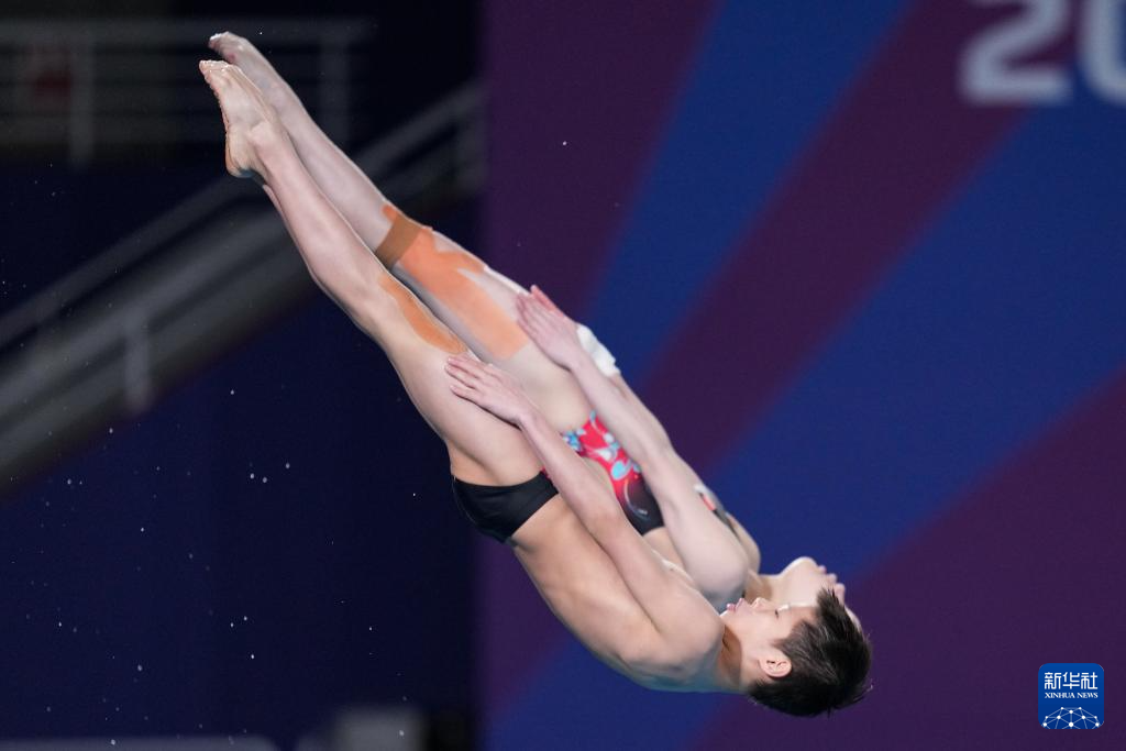 当日,在卡塔尔多哈举行的2024年世界游泳锦标赛跳水项目混双10米台决赛中,中国组合张家齐/黄建杰以353.82分的成绩夺得冠军。