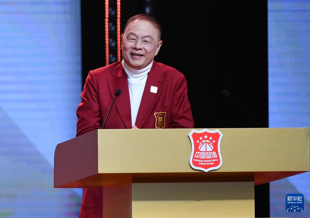 2月4日,2023年中国篮球名人堂入堂人物张卫平在仪式上致辞。新华社记者 张博文 摄